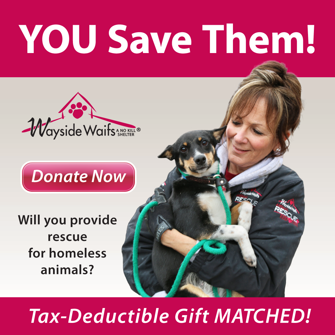 Each year, thousands of abandoned and neglected animals come to Wayside Waifs looking for a second chance. As part of our no kill mission and commitment to preparing pets and people for the bond of their lives, Wayside strives to place as many animals as possible in responsible, loving homes. Wayside has a 97% live release rate. Only animals with extreme medical conditions or extreme behavior issues are humanely euthanized.